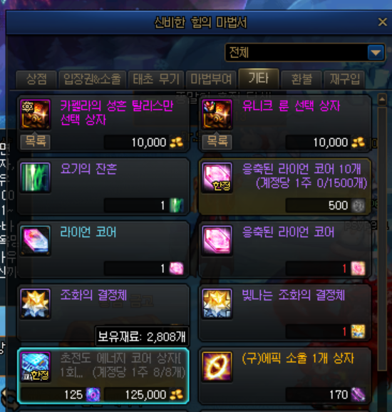 - 구입 시 125,000골드 + 에너지 코어 125개가 소모됨