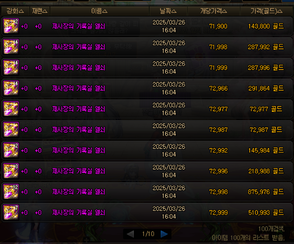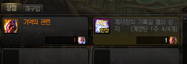 - 기억의 편린: 1:1 비율로 제사장의 기록실 열쇠 상자 교환 가능 (계정당 주 4개) → 개당 약 7만 골드