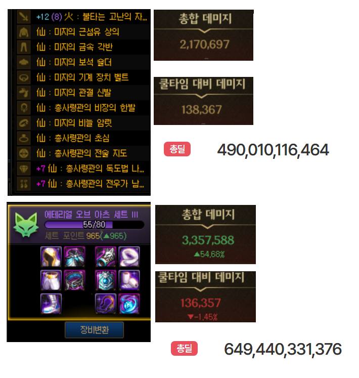 | 총합 데미지 | 2,170,697 | 3,357,588 |