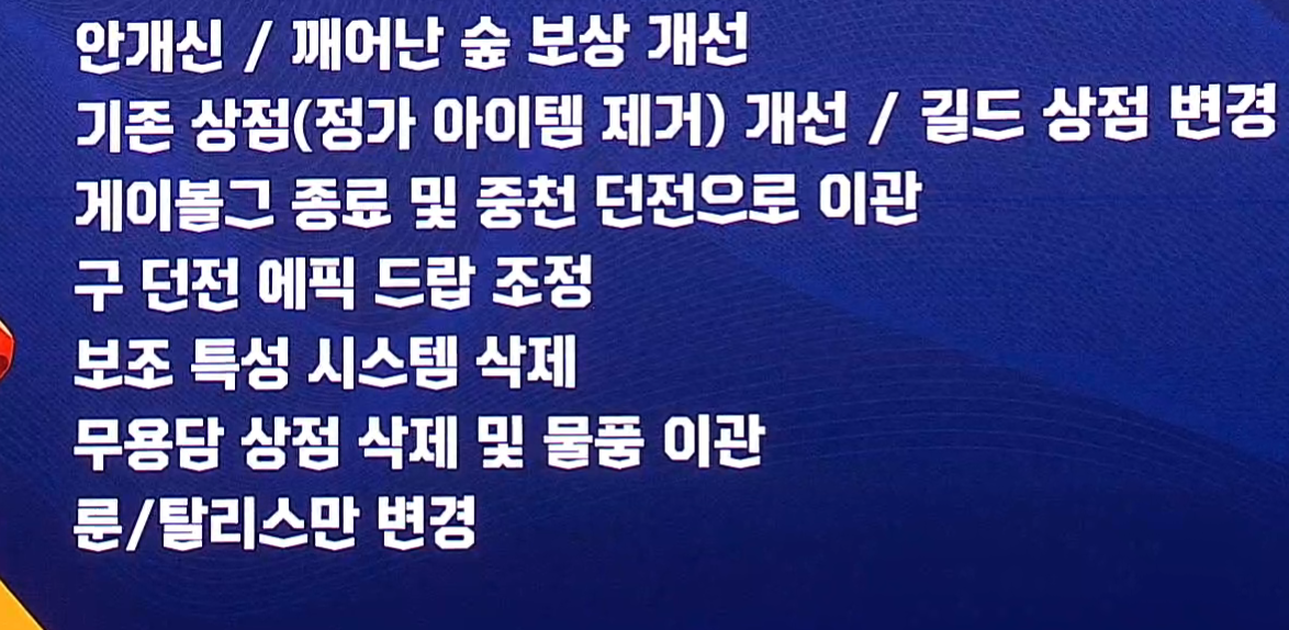 변경 되는점이 많네요. 카지노의 삭제 와 신규 재화 던전의 등장 , 헬던전도 나오고....ㅠㅠ