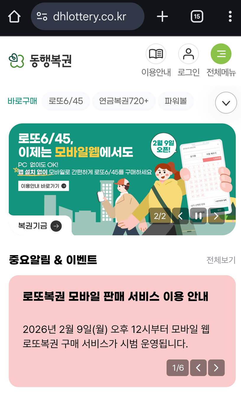 여러분, 드디어 그날이 왔습니다. PC로만 가능했던 온라인 로또 구매가 2026년 2월 9일부로 모바일에서도 가능해졌습니다!