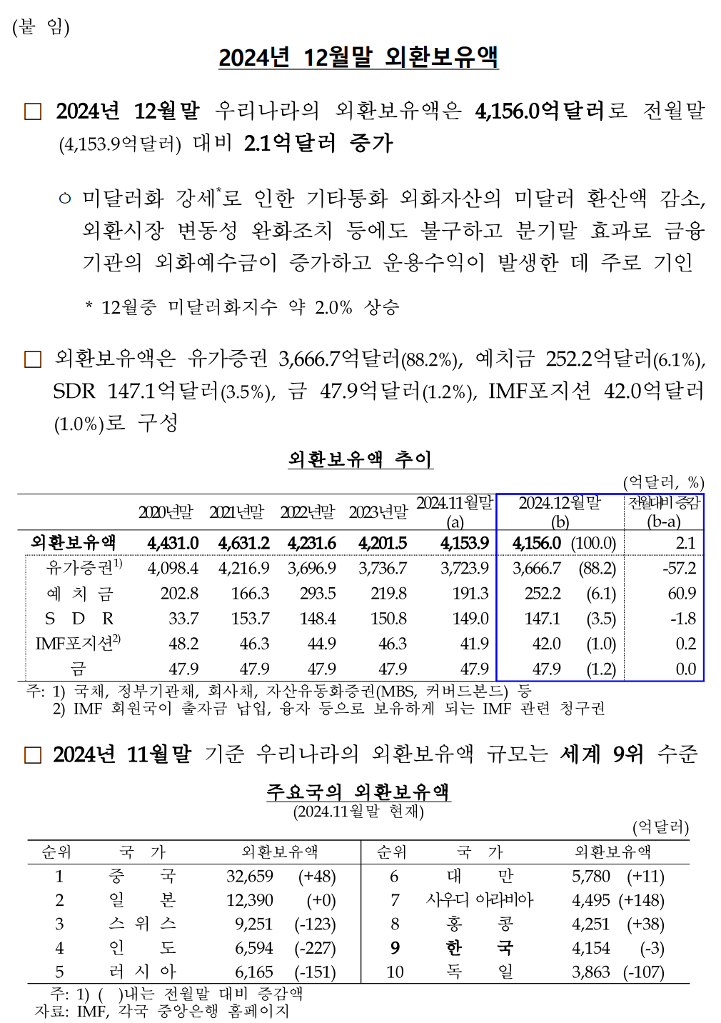 - 분기말을 맞아 금융 건전성을 강화하려는 움직임이 외환보유고 상승에 기여했습니다.