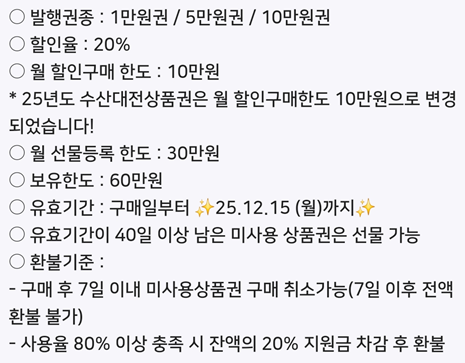 ✅ 구매 후 7일 이내 미사용 상품권 취소 가능 (7일 이후 환불 불가)