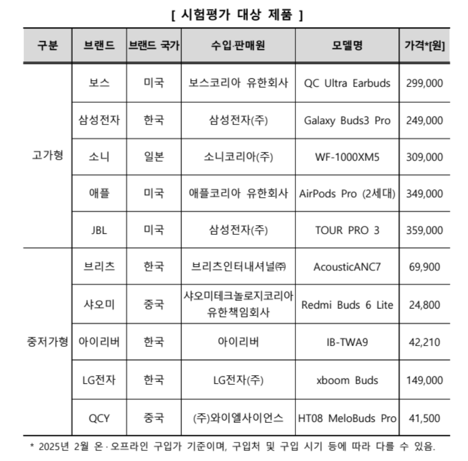 이번 시험은 음향품질, 노이즈 캔슬링(ANC), 통화품질, 재생시간, 지연시간, 안전성, 부가기능 등을 평가 대상으로 삼았으며, 고가형부터 중저가형까지 고르게 비교되었습니다.
