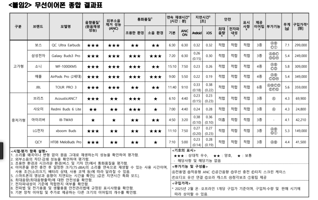 2025 무선이어폰 품질비교 결과 공개! 가격부터 성능까지 꼼꼼히 비교하세요