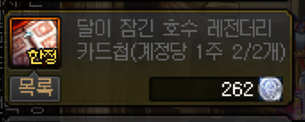 중천 업데이트 이후, 마법서에서 주 2개까지 구매 가능한 ‘달이 잠긴 호수’ 레전더리 카드첩이 있습니다.