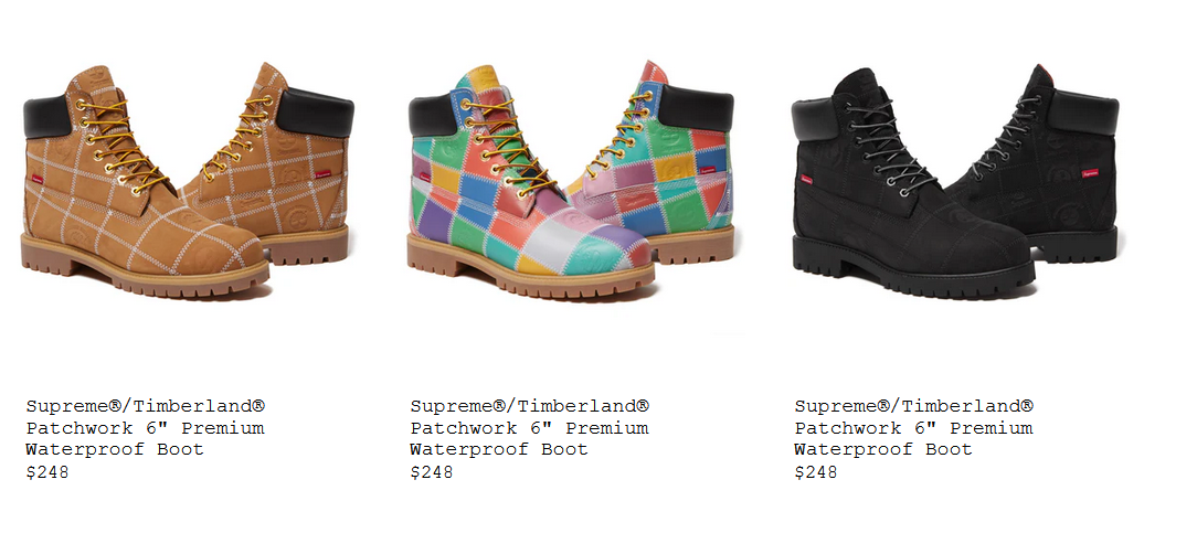 Supreme®/Timberland® Patchwork 6" Premium Waterproof Boot $248 ₩465,000