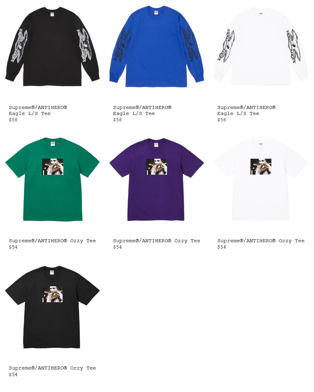 Supreme®/ANTIHERO® Ozzy Tee $54 ₩88,000