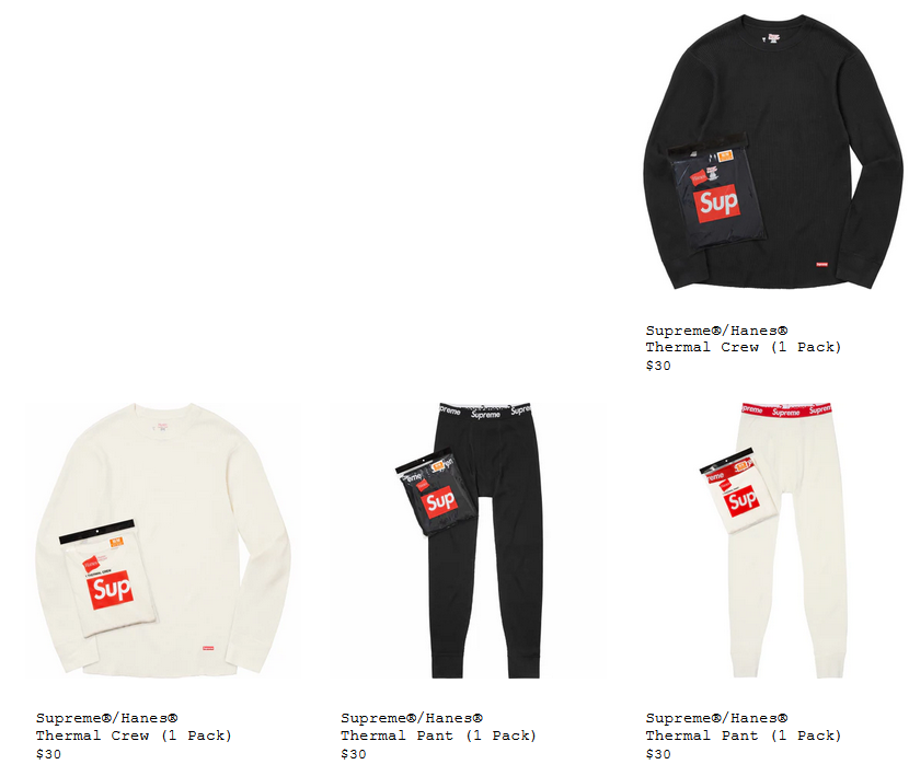Supreme ®/Hanes® Thermal Crew (1 Pack) $30 ₩54,000