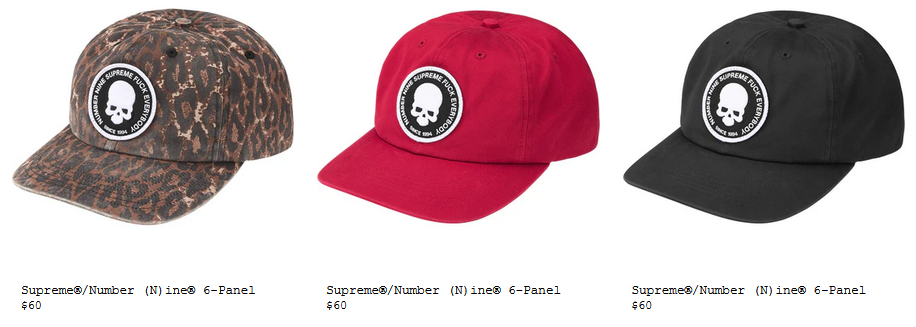 Supreme®/Number (N) ine® 6-Panel $60 ₩98,000