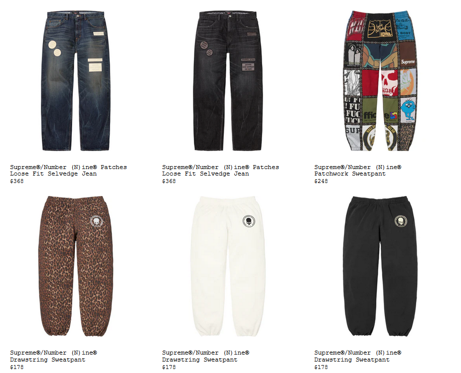 Supreme®/Number (N) ine® Patchwork Sweatpant $248 ₩398,000
