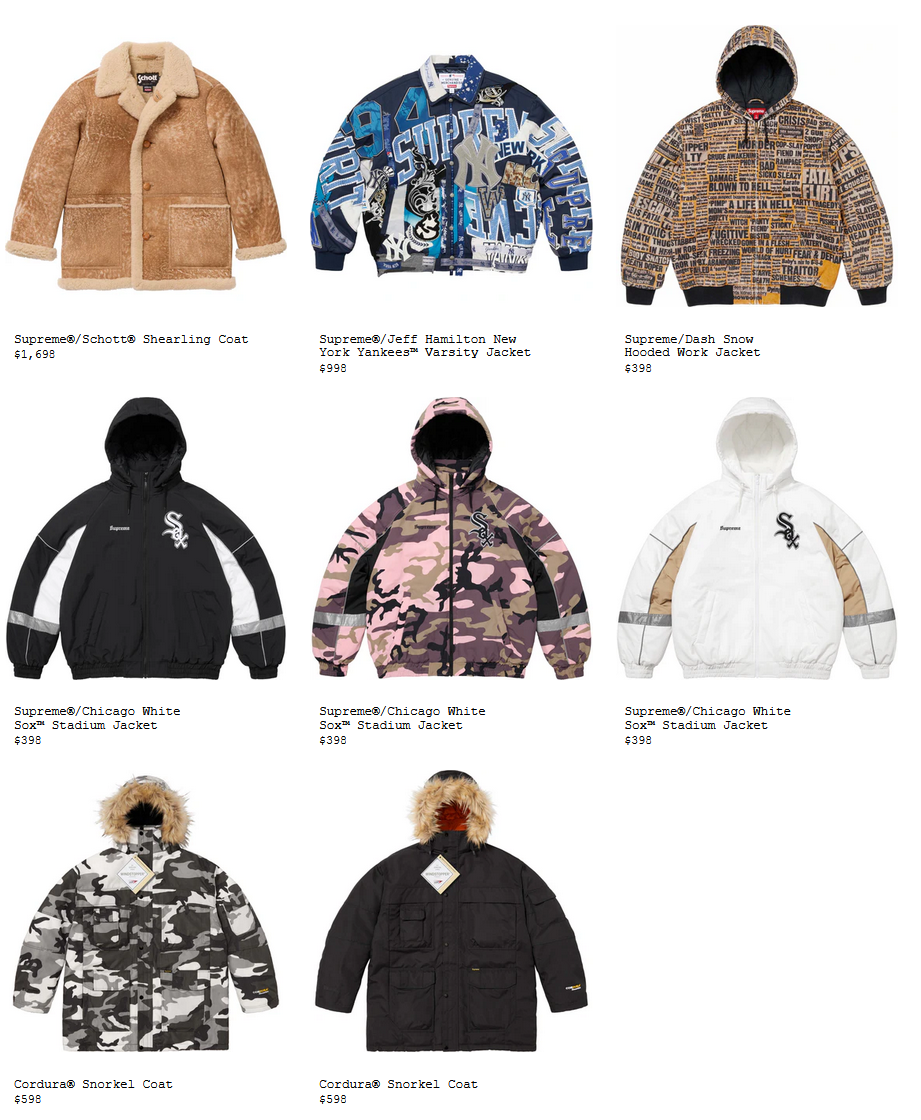 Supreme 슈프림 2025년 FW 17 Week 드랍리스트