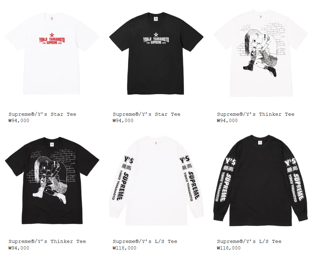Supreme®/Y's L/s Tee $68 ₩118,000