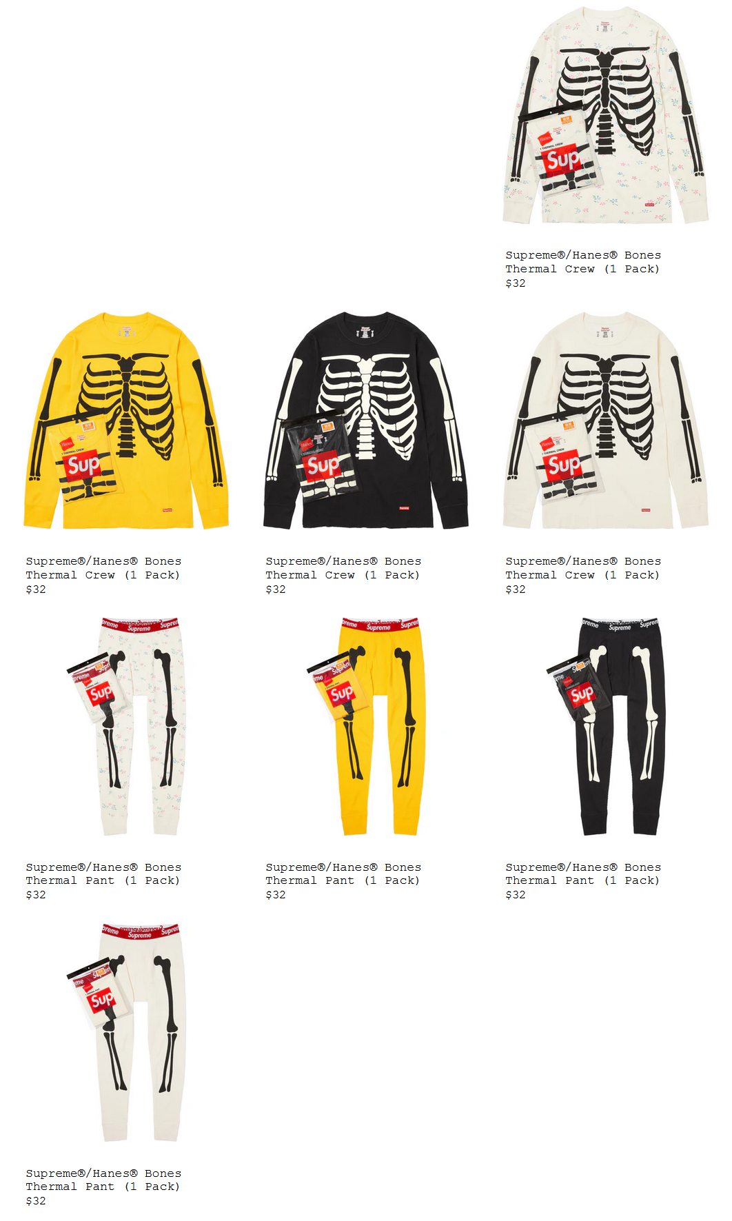 Supreme® /Hanes® Bones Thermal Crew (1 Pack) $32 ₩64,000
