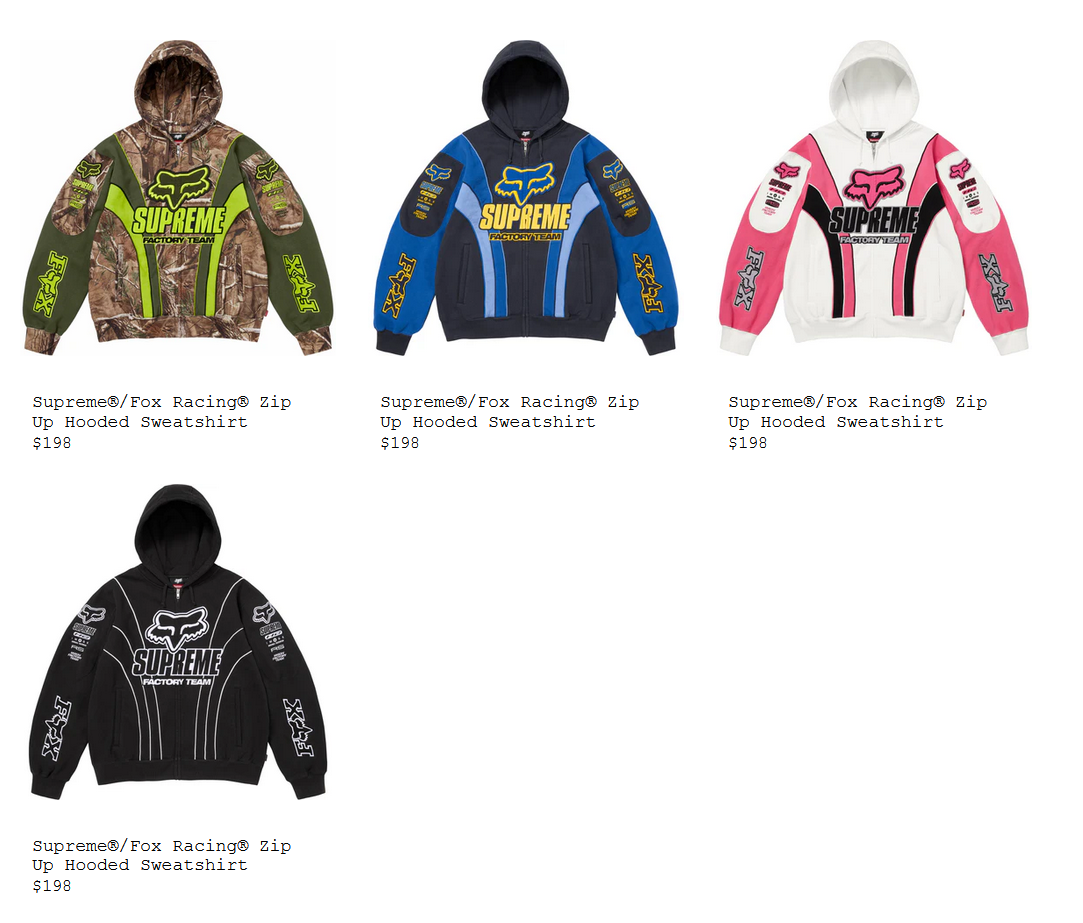 Supreme® /Fox Racing® Zip Up Hooded Sweatshirt $168 ₩348,000