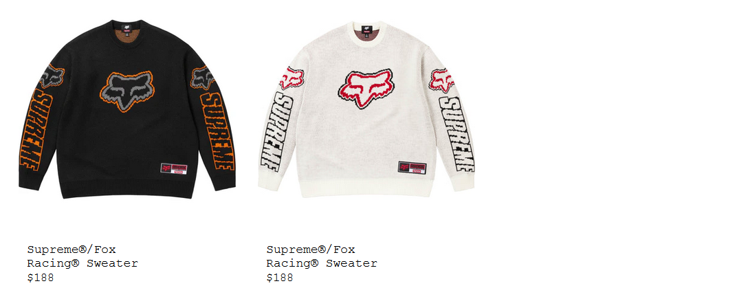 Supreme® /Fox Racing® Sweater $188 ₩318,000