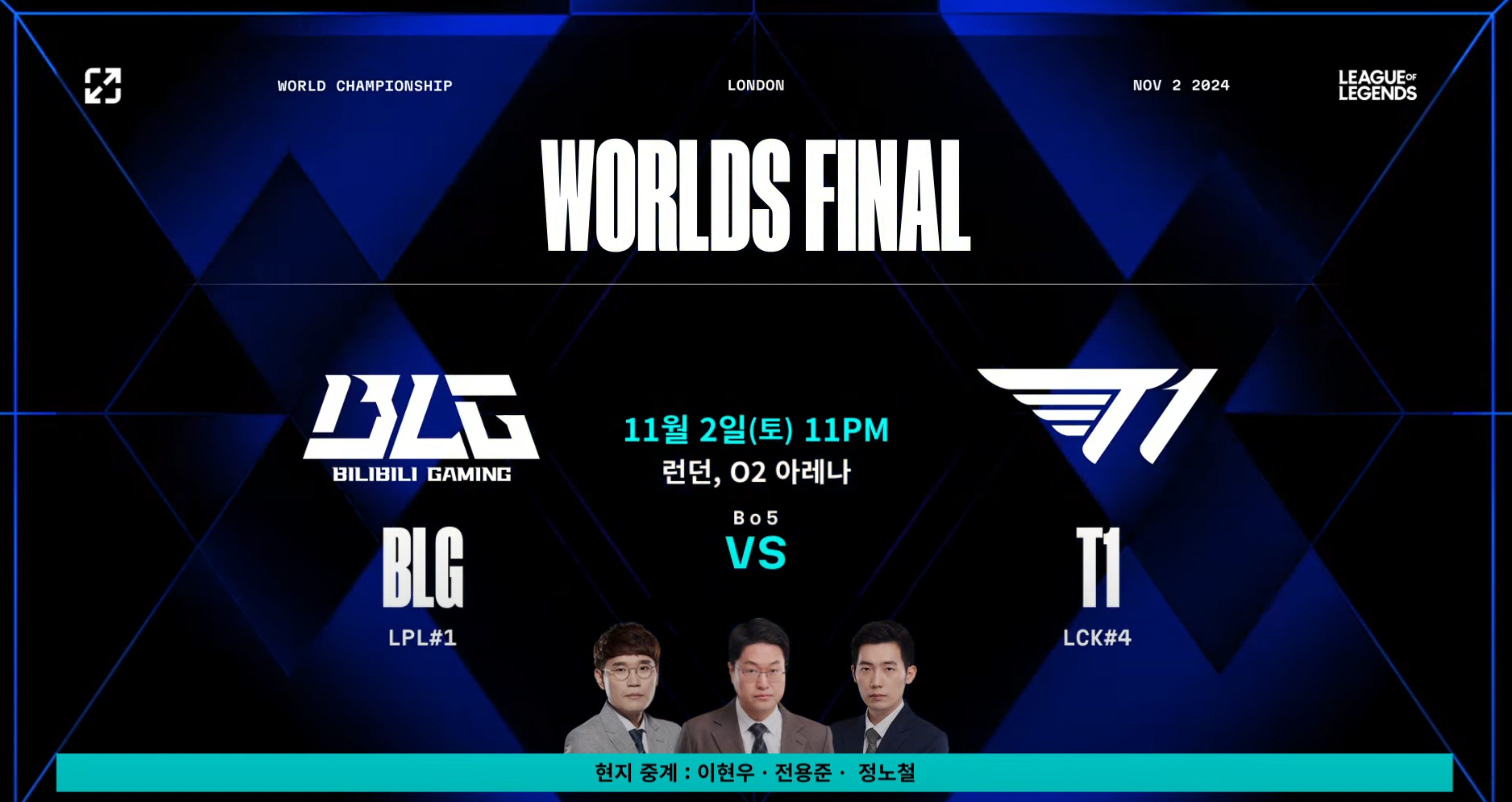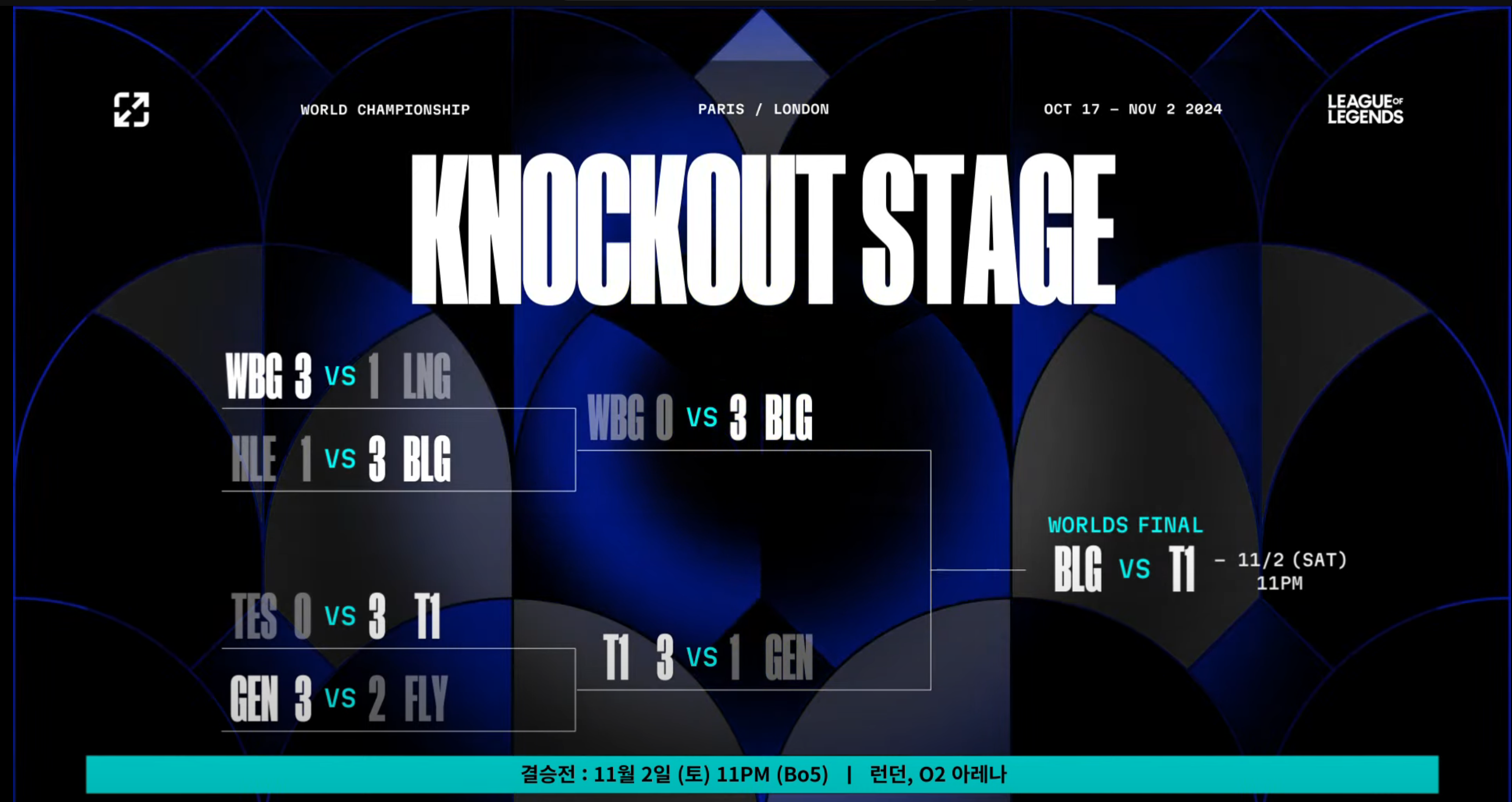 - 결승전: 11월 2일 토요일 23:00 (런던)
